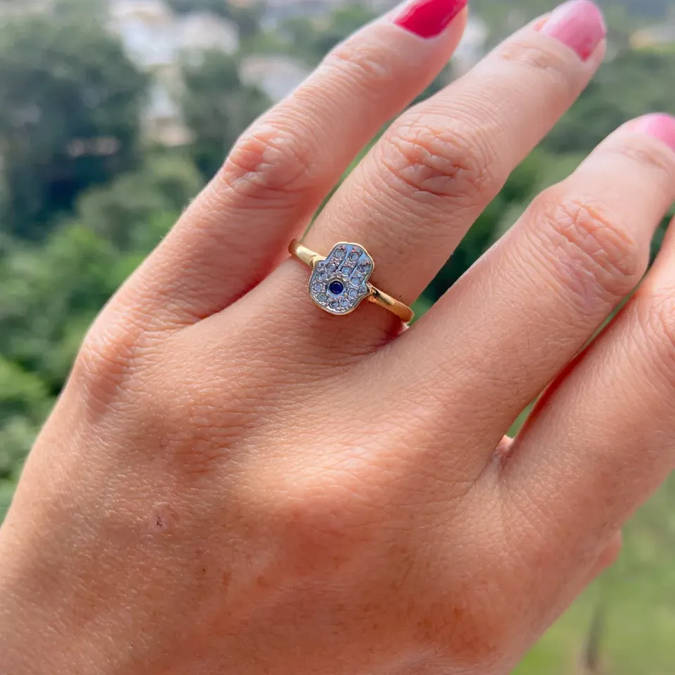 ANEL DOURADO DUPLO COM CRISTAL E ZIRCÔNIA...