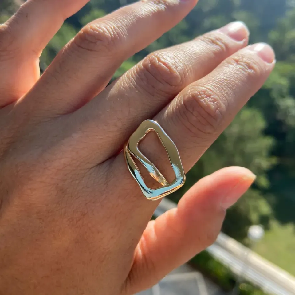 ANEL DOURADO DUPLO COM CRISTAL E ZIRCÔNIA...