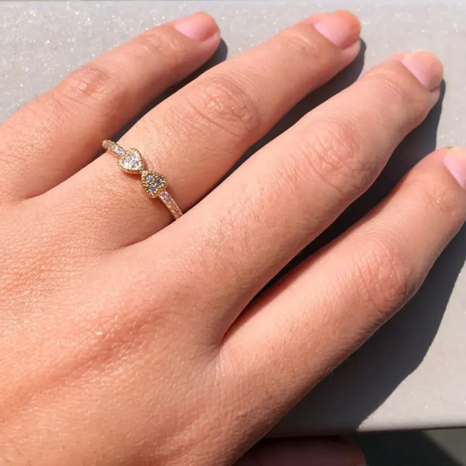 ANEL DOURADO DUPLO COM CRISTAL E ZIRCÔNIA...