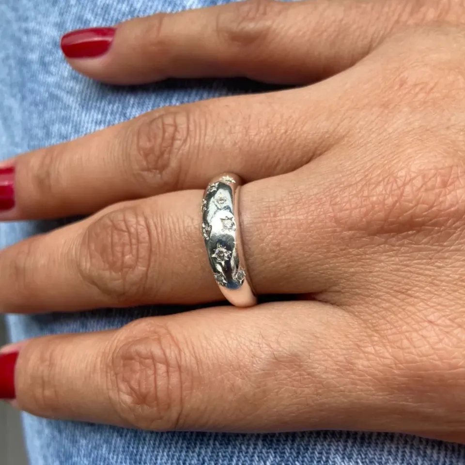 ANEL PRATA CORAÇÃO CRAVEJADO...
