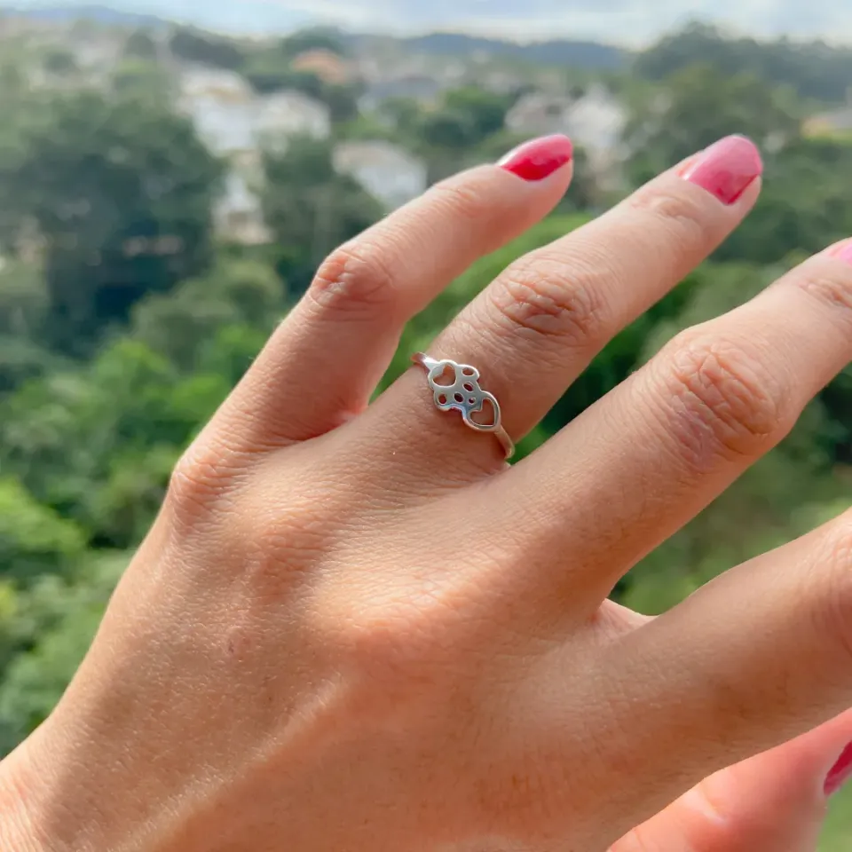ANEL PRATA CORAÇÃO CRAVEJADO...