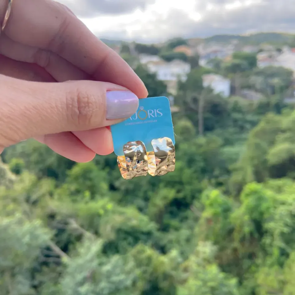 BRINCO PRATA MEIA ARGOLA QUADRADA TEXTURIZ...