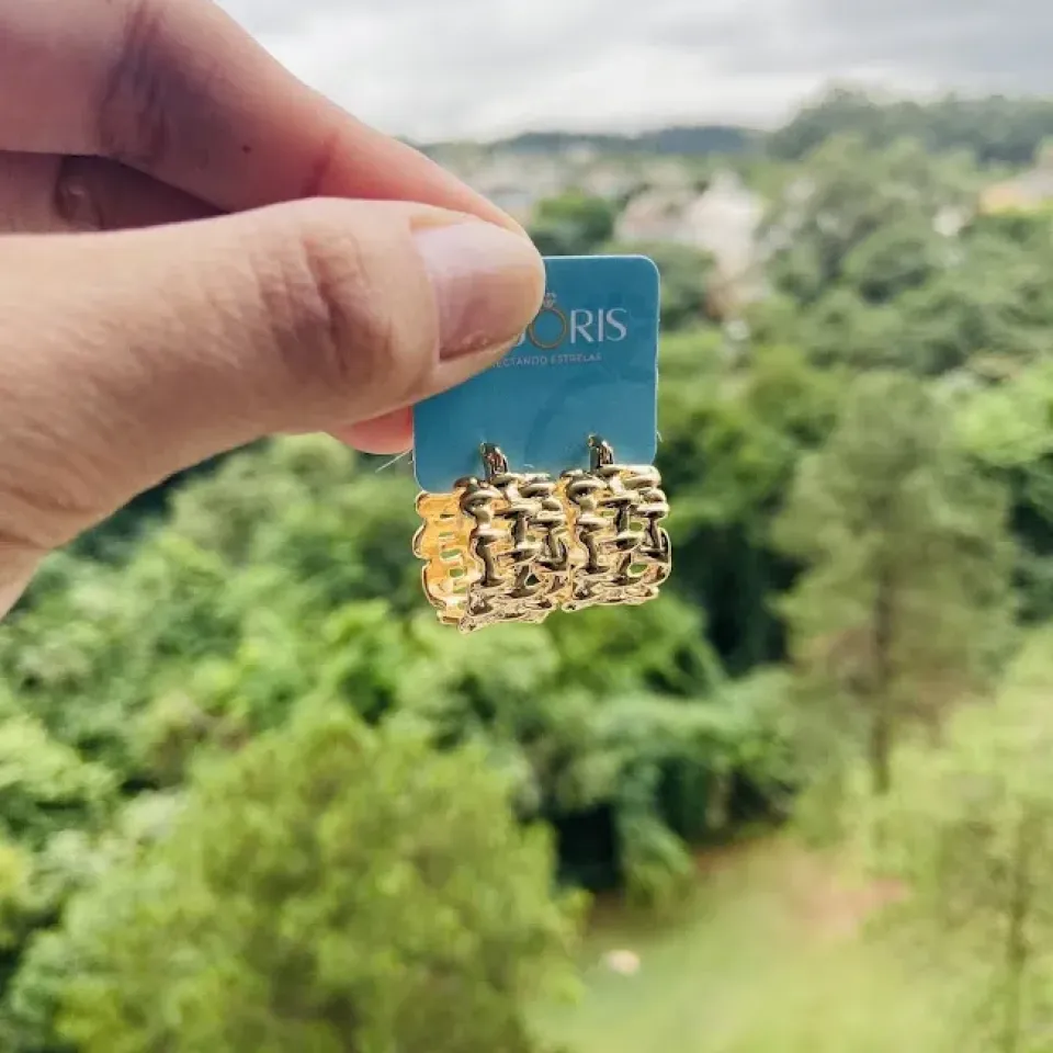 BRINCO PRATA MEIA ARGOLA QUADRADA TEXTURIZ...