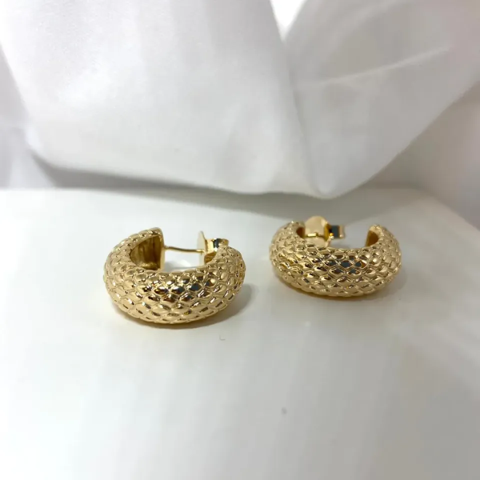BRINCO PRATA MEIA ARGOLA QUADRADA TEXTURIZ...