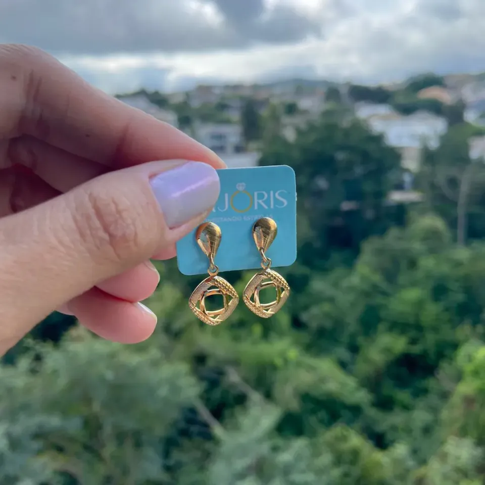 BRINCO PRATA MEIA ARGOLA QUADRADA TEXTURIZ...