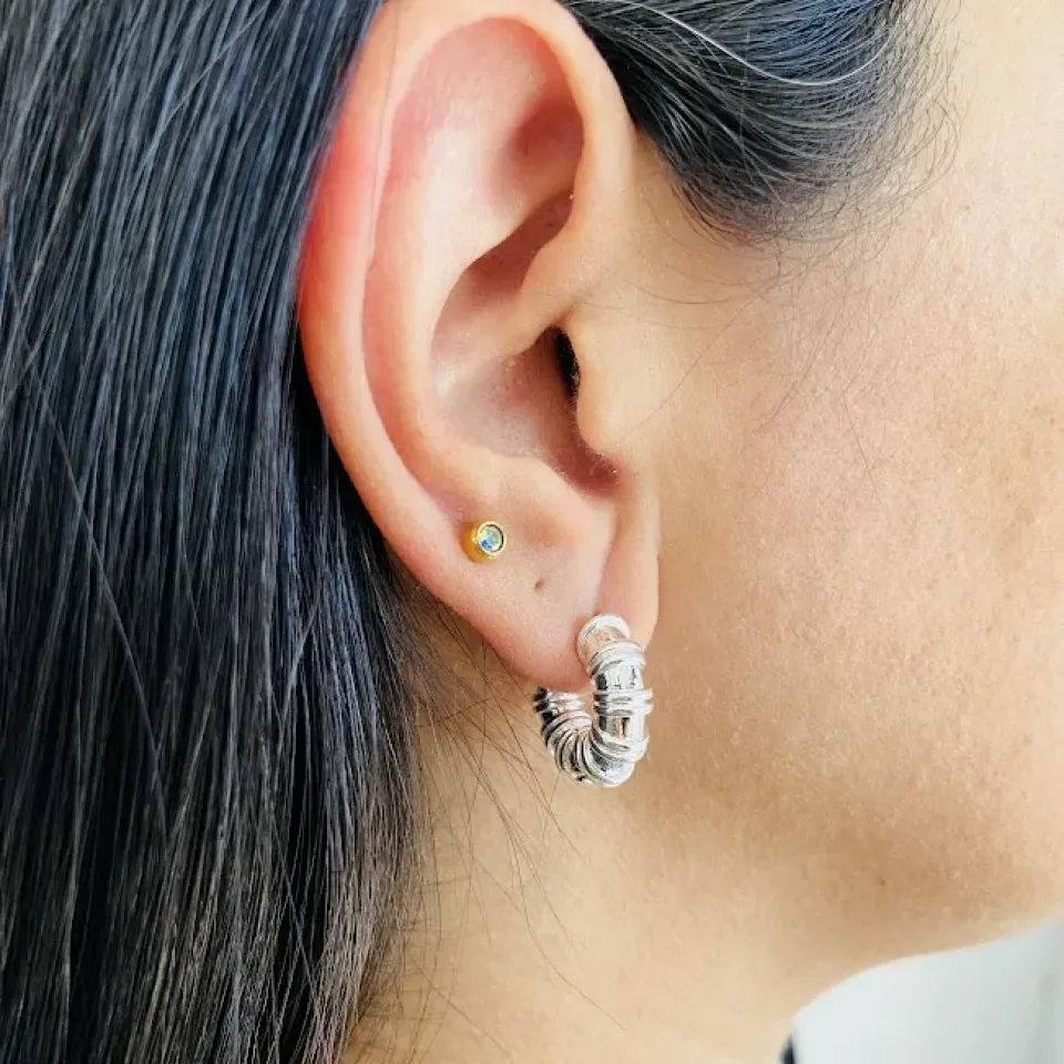 BRINCO PRATA MEIA ARGOLA QUADRADA TEXTURIZ...