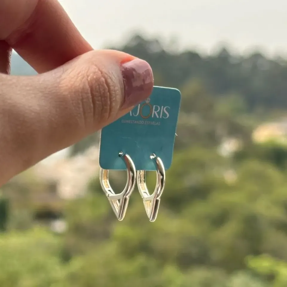 BRINCO PRATA MEIA ARGOLA QUADRADA TEXTURIZ...