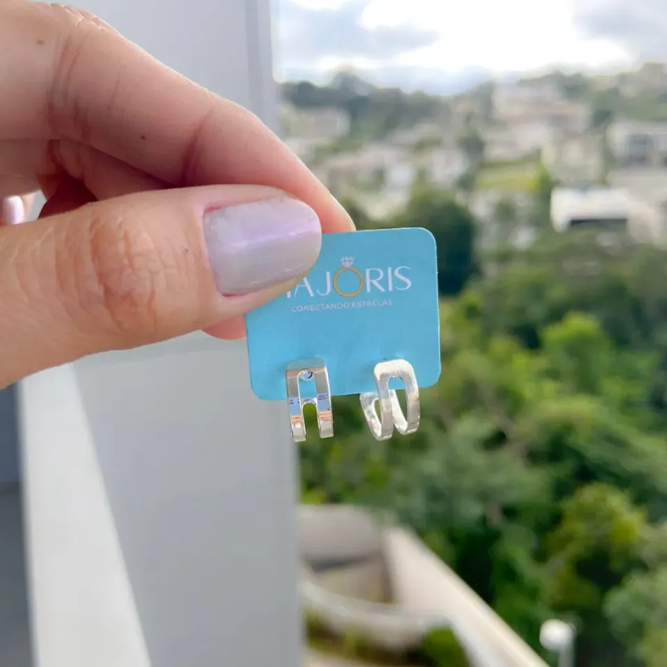 BRINCO PRATA MEIA ARGOLA QUADRADA TEXTURIZ...