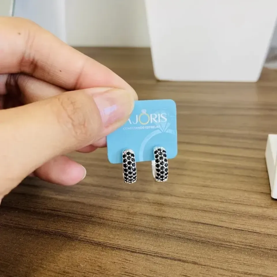 BRINCO PRATA MEIA ARGOLA QUADRADA TEXTURIZ...