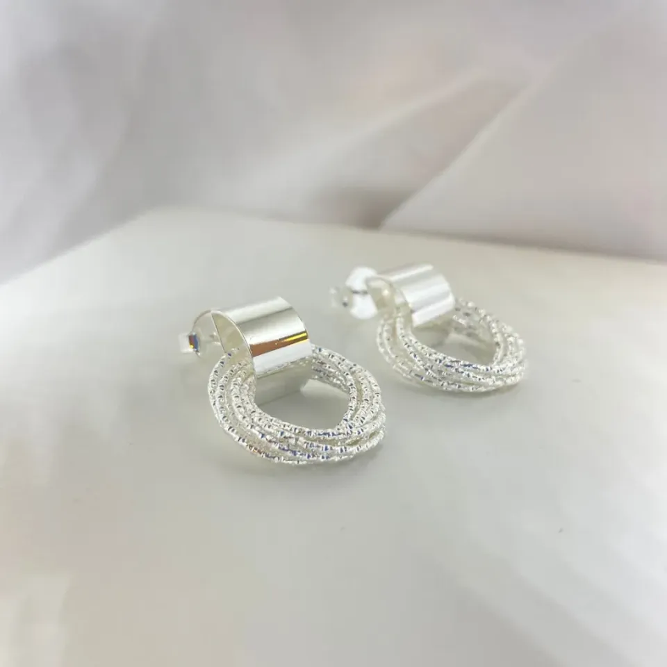 BRINCO PRATA MEIA ARGOLA QUADRADA TEXTURIZ...