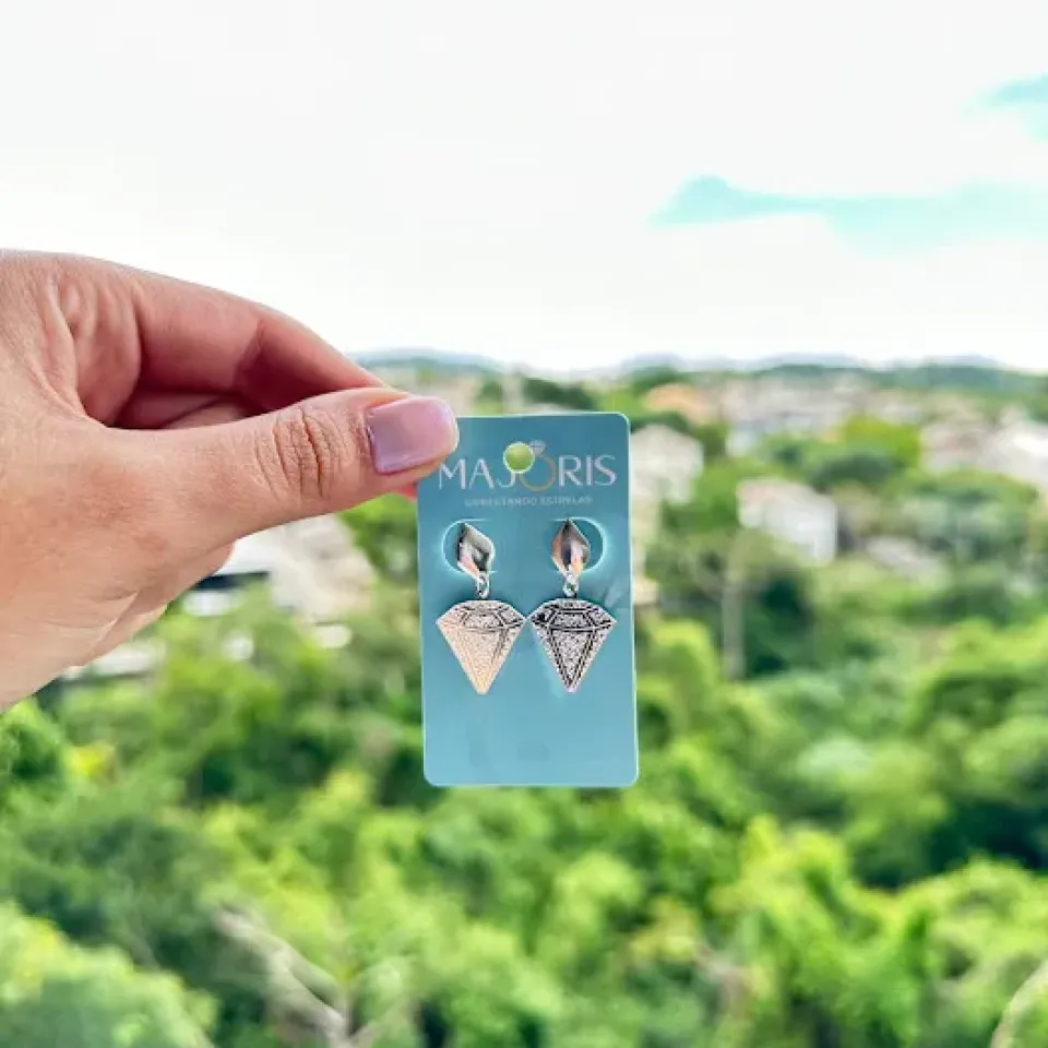 BRINCO PRATA MEIA ARGOLA QUADRADA TEXTURIZ...