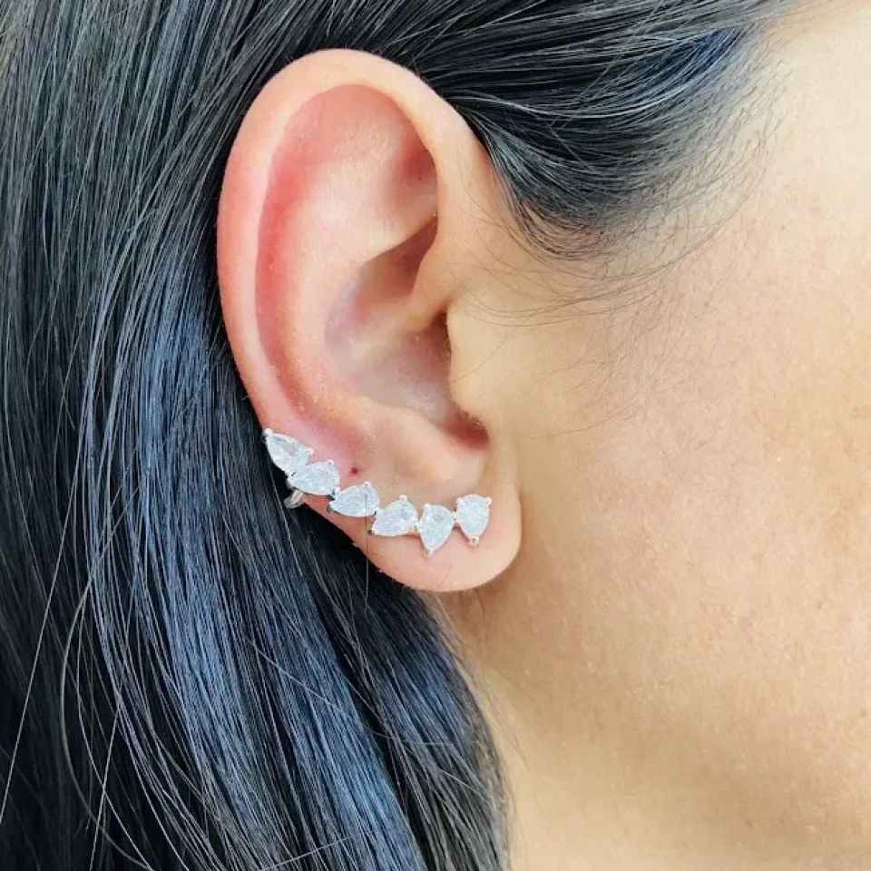 BRINCO PRATA MEIA ARGOLA QUADRADA TEXTURIZ...