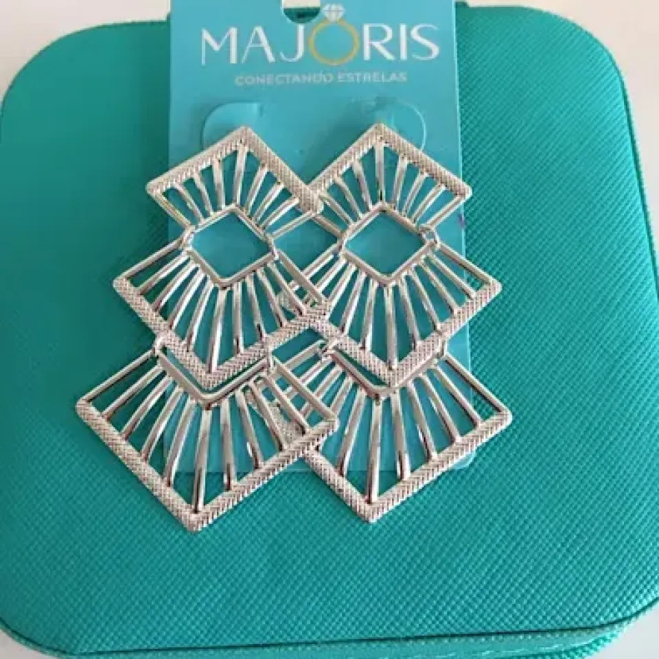 BRINCO PRATA MEIA ARGOLA QUADRADA TEXTURIZ...