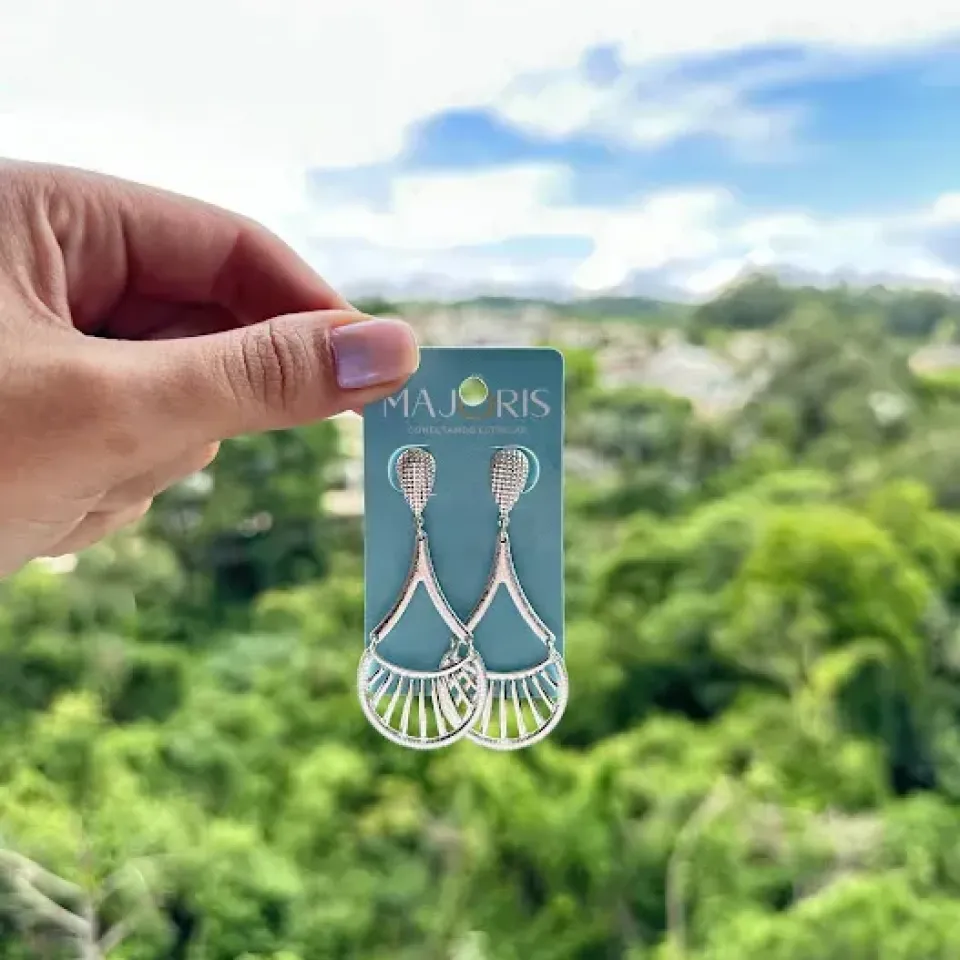 BRINCO PRATA MEIA ARGOLA QUADRADA TEXTURIZ...