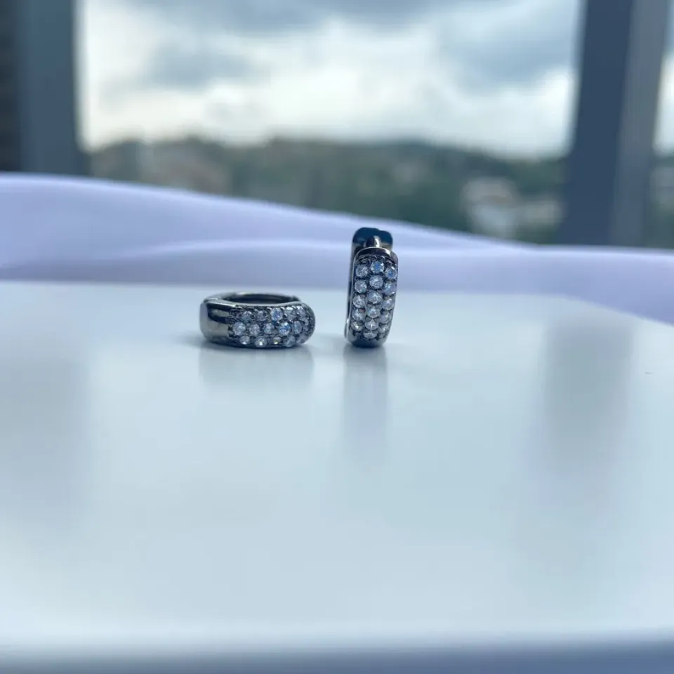 BRINCO PRATA PAVÊ BLACK...