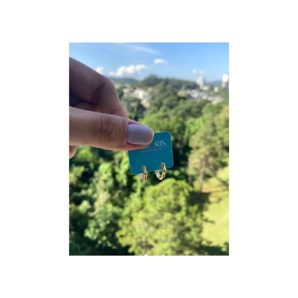 BRINCO PRATA MEIA ARGOLA QUADRADA TEXTURIZ...