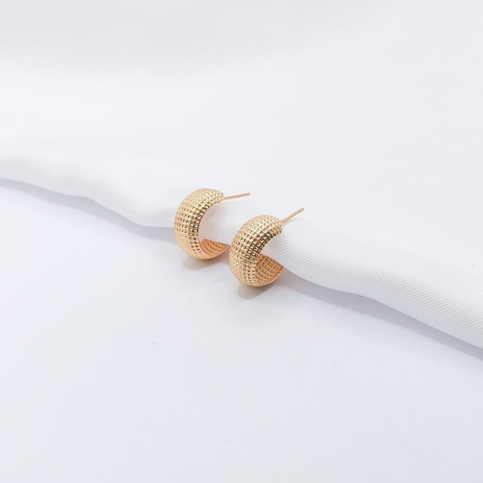 BRINCO PRATA MEIA ARGOLA QUADRADA TEXTURIZ...