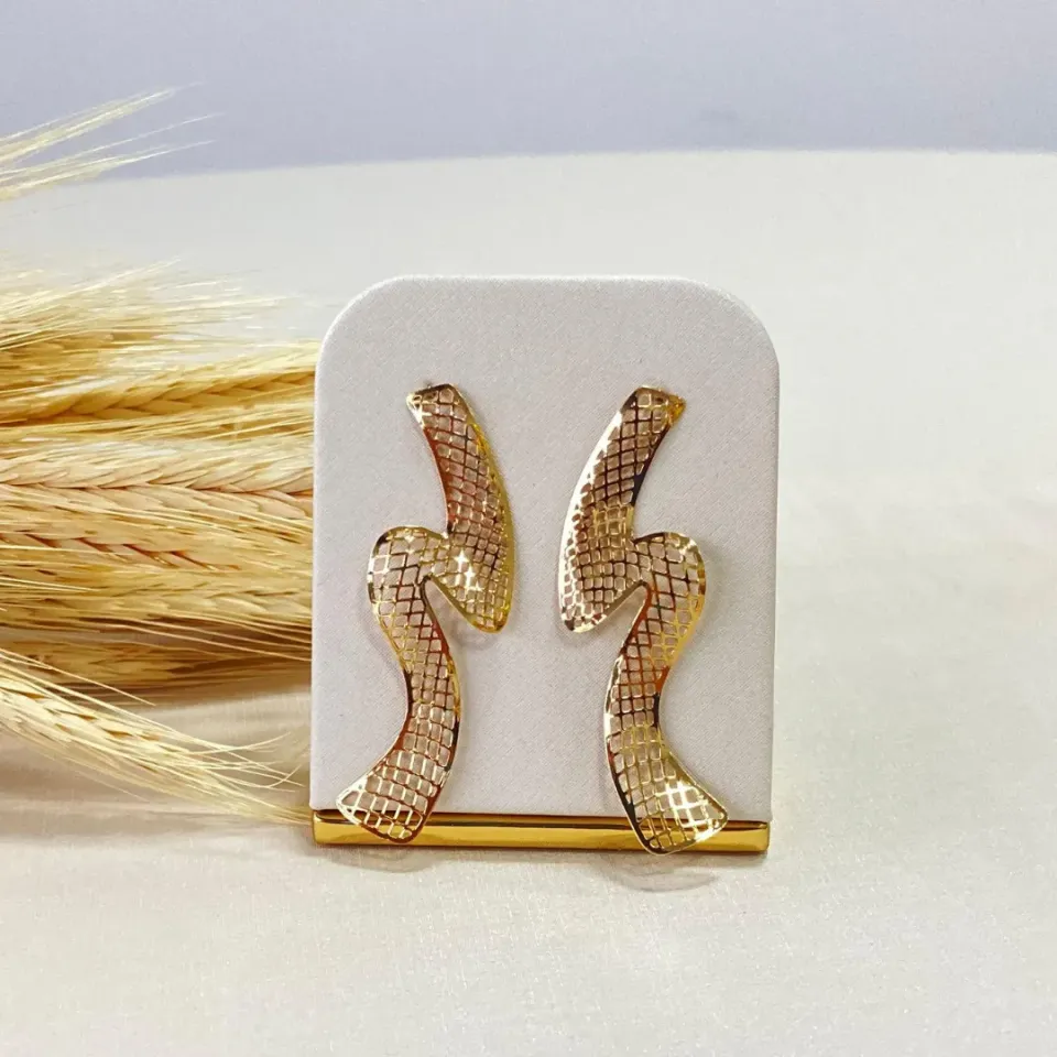 BRINCO PRATA MEIA ARGOLA QUADRADA TEXTURIZ...