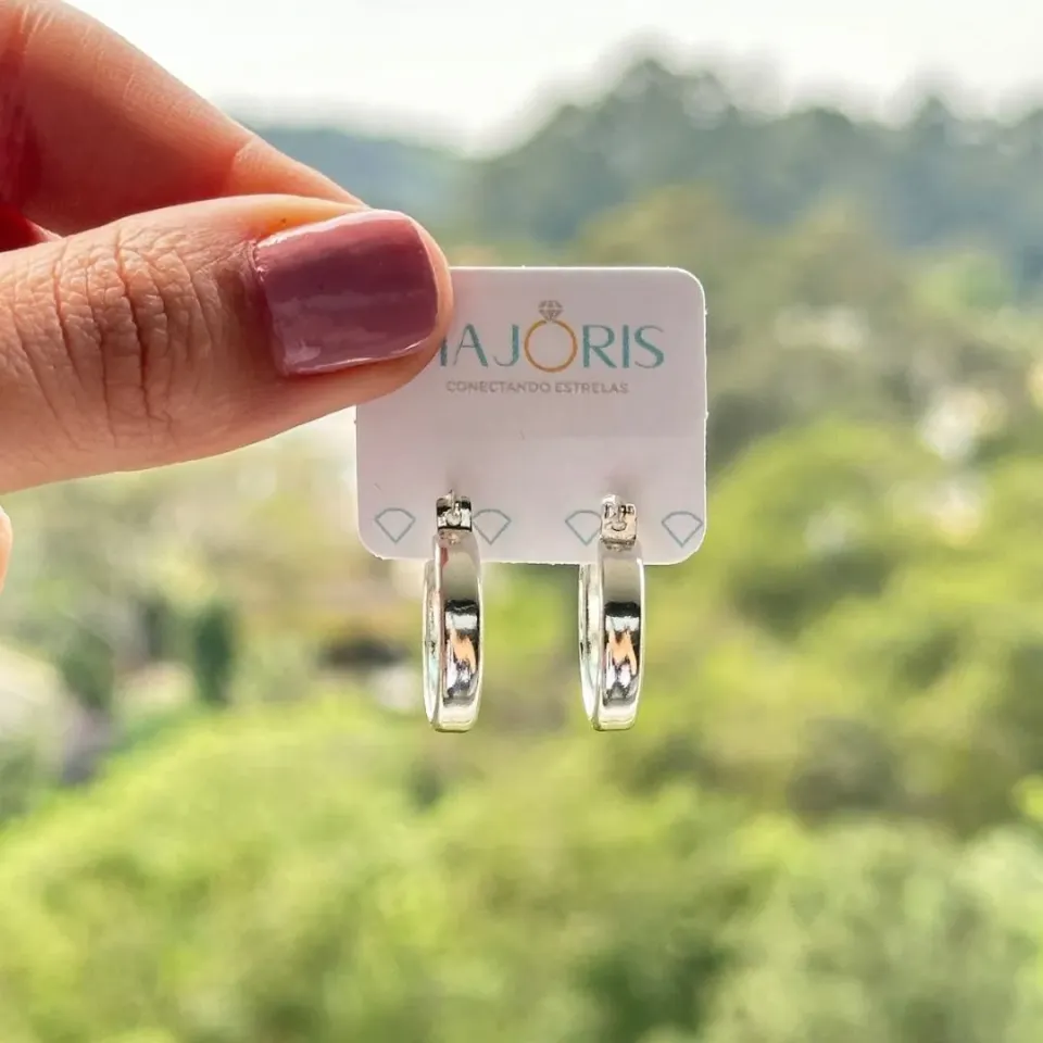 BRINCO PRATA MEIA ARGOLA QUADRADA TEXTURIZ...