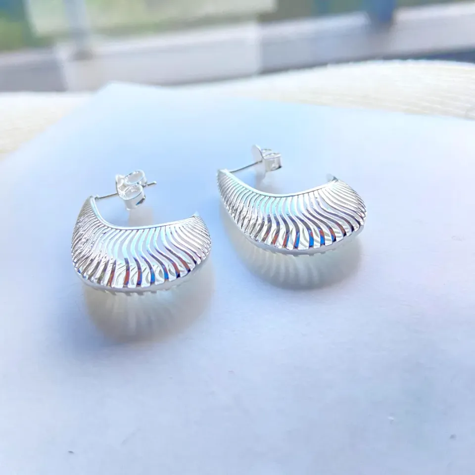 BRINCO PRATA MEIA ARGOLA QUADRADA TEXTURIZ...