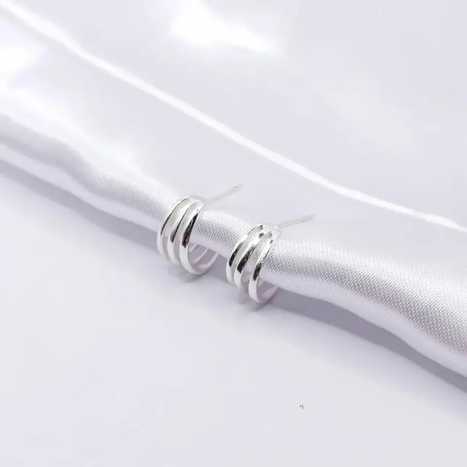 BRINCO PRATA GEOMÉTRICO 3 FIOS LISOS...