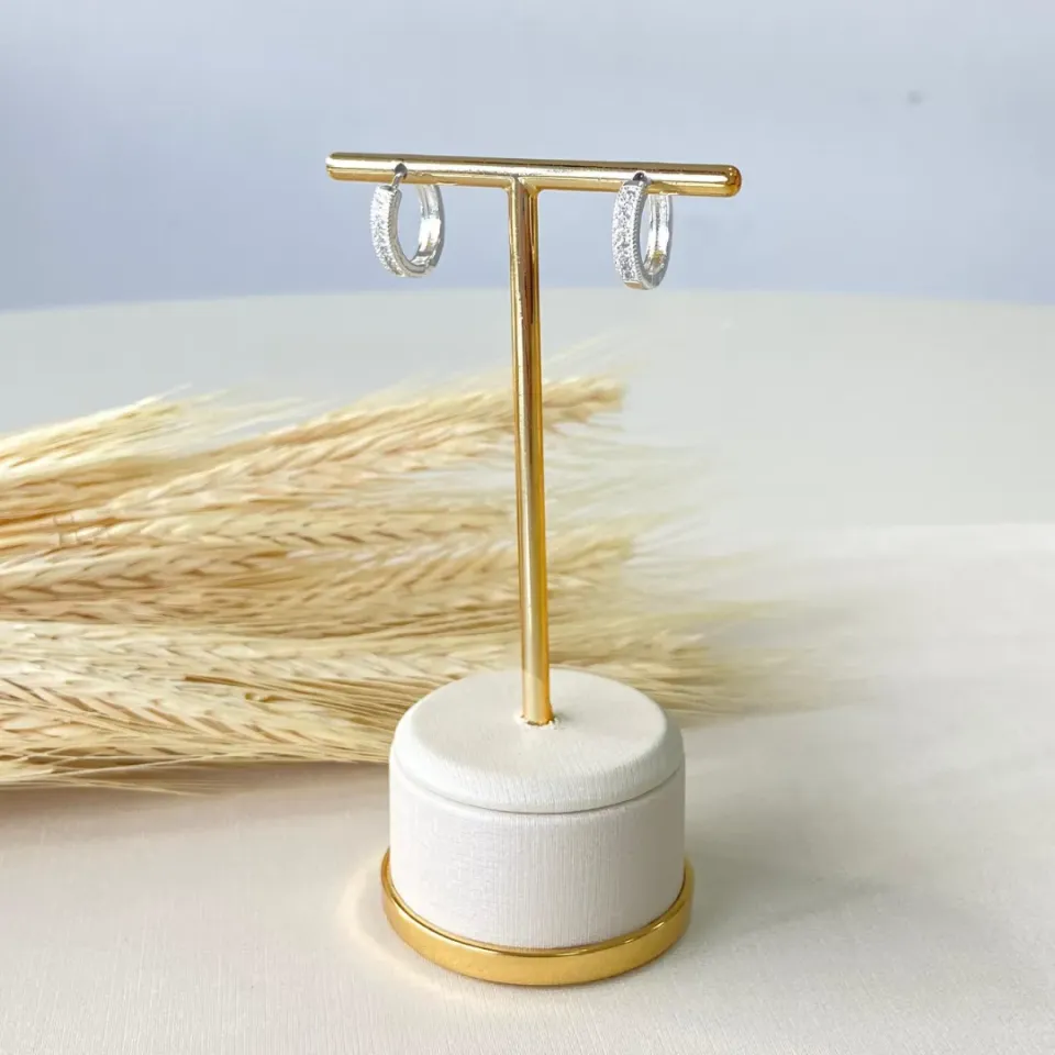 BRINCO PRATA MEIA ARGOLA QUADRADA TEXTURIZ...