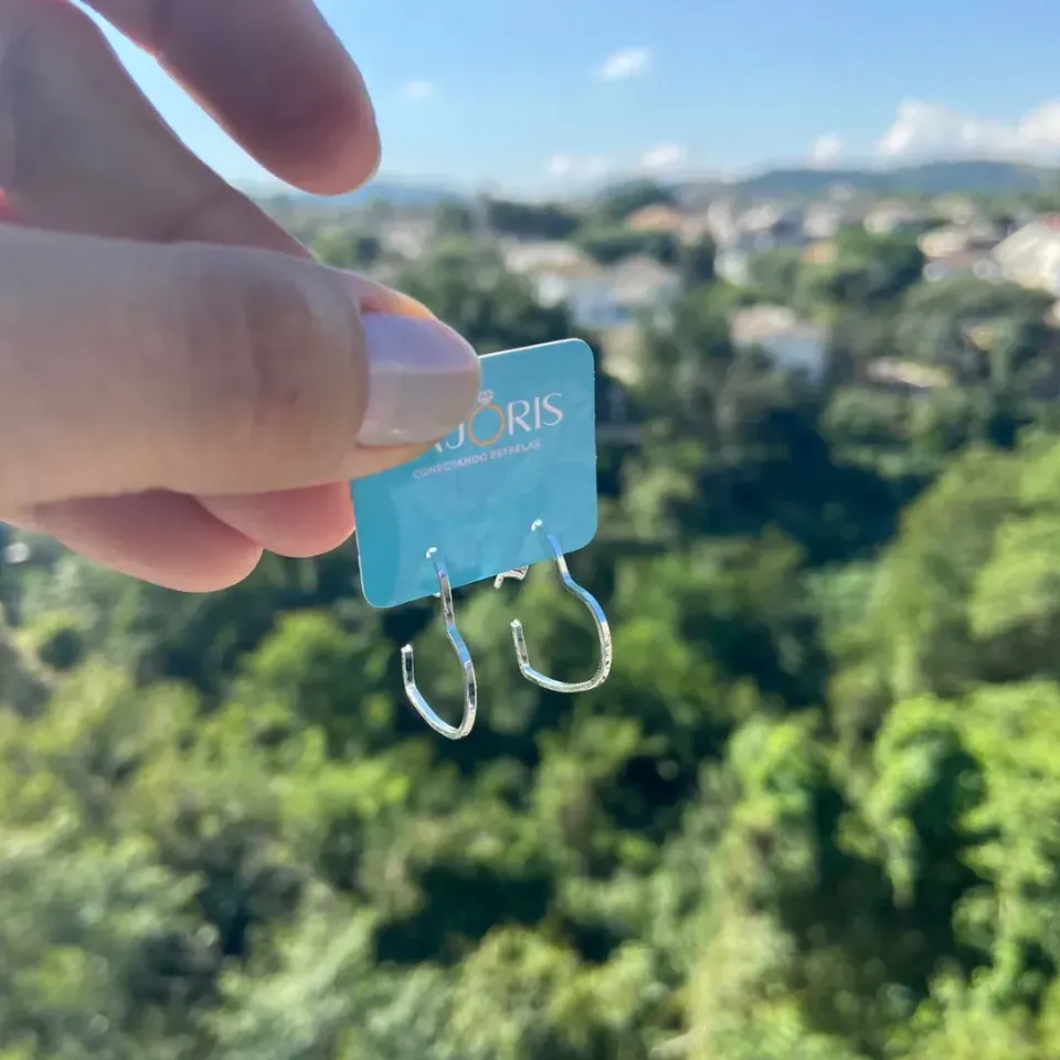 BRINCO PRATA MEIA ARGOLA QUADRADA TEXTURIZ...