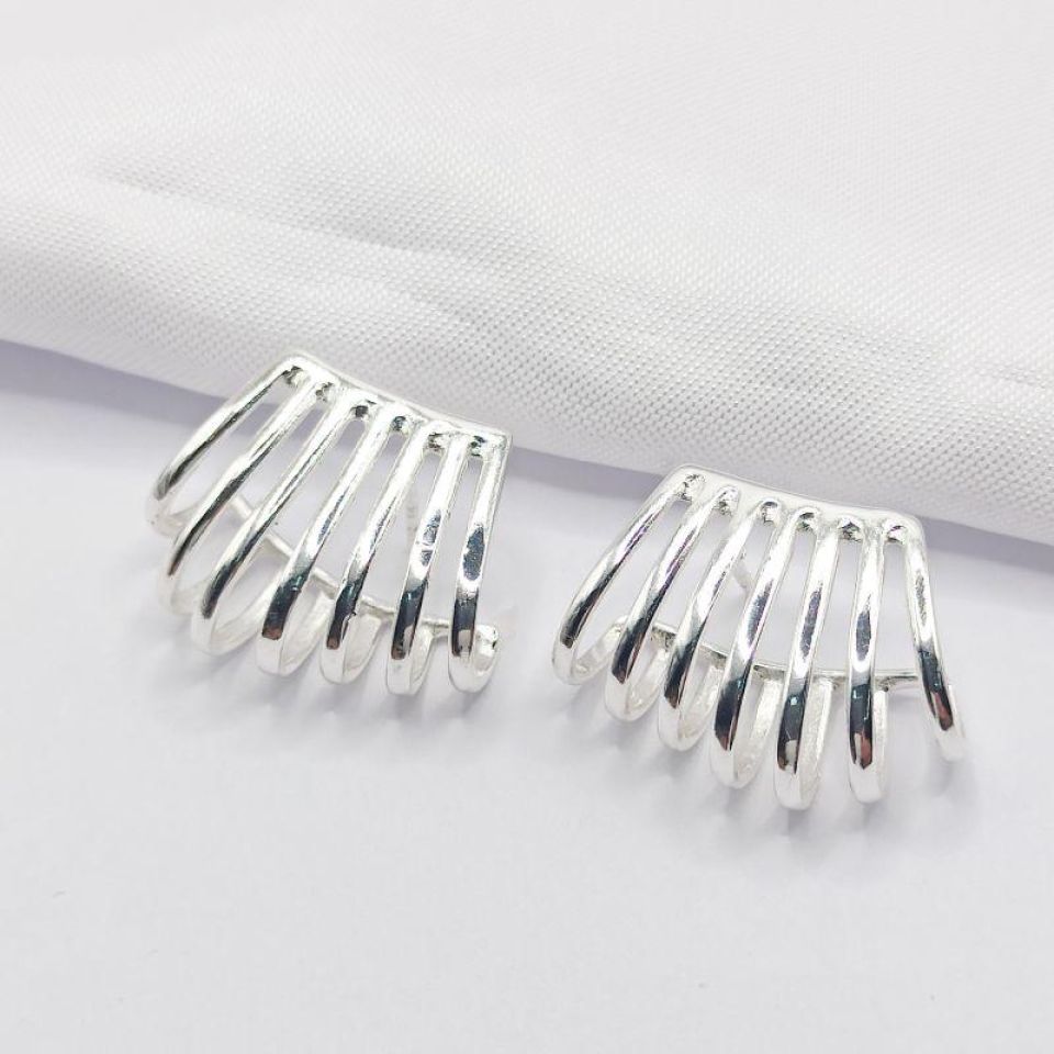 BRINCO PRATA MEIA ARGOLA QUADRADA TEXTURIZ...