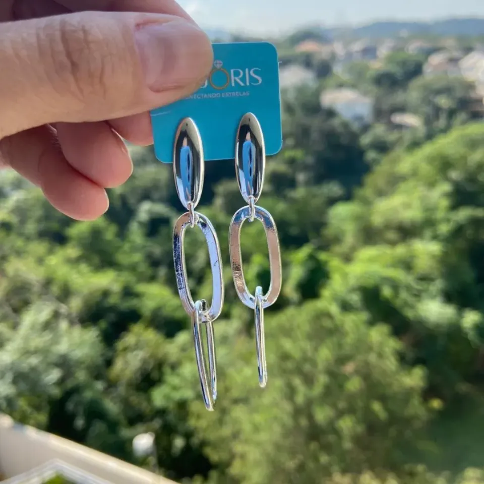 BRINCO PRATA MEIA ARGOLA QUADRADA TEXTURIZ...