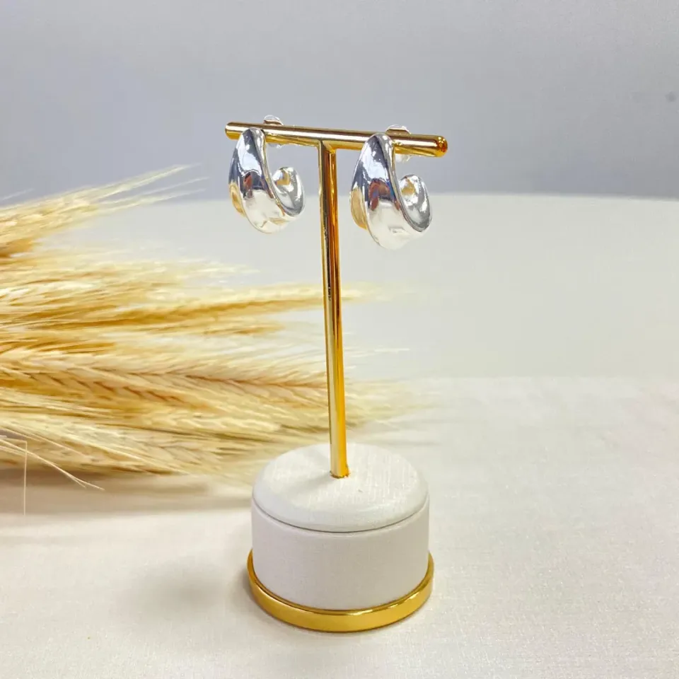 BRINCO PRATA MEIA ARGOLA QUADRADA TEXTURIZ...
