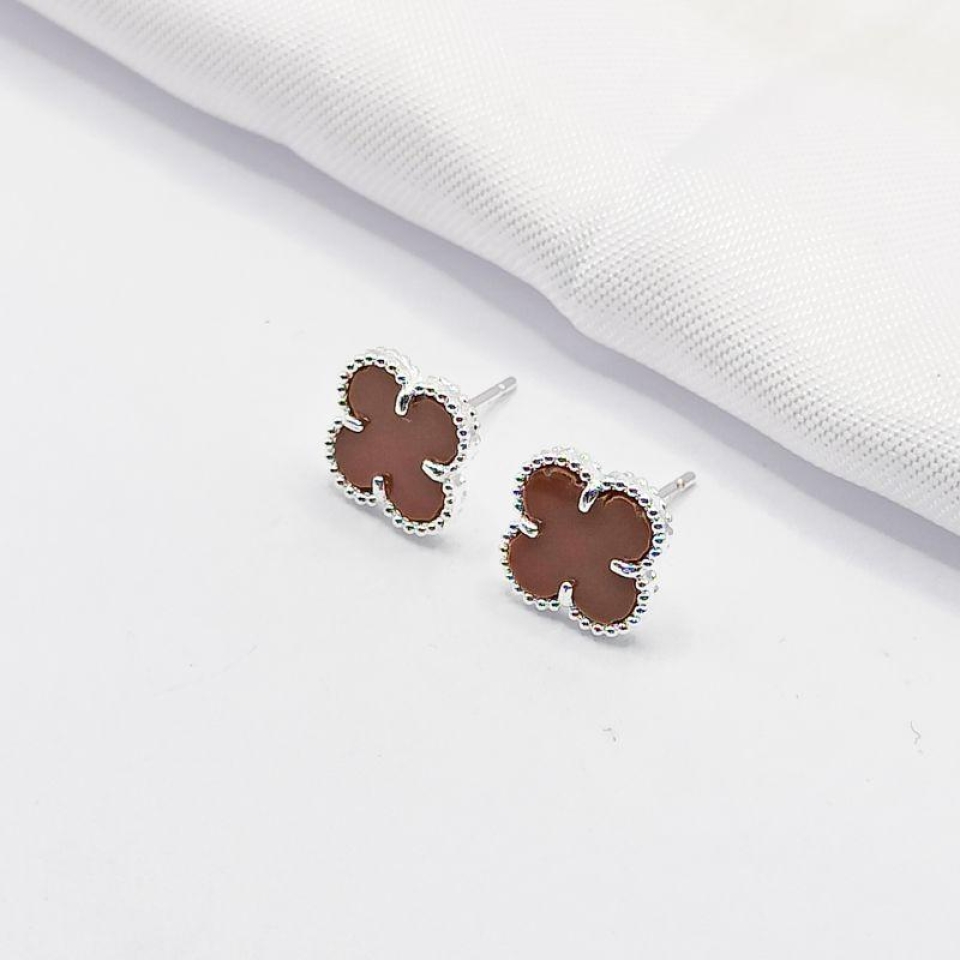 BRINCO PRATA TREVO VAN CLEEF MARROM...