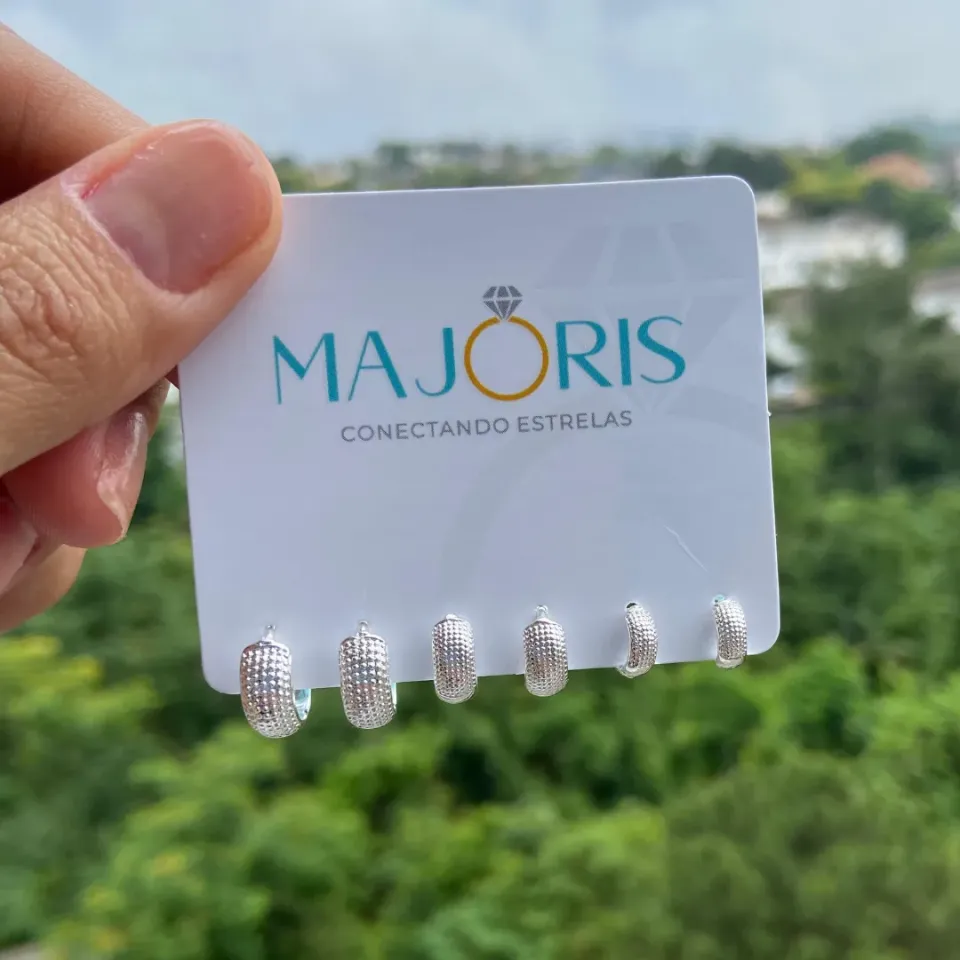 BRINCO PRATA MEIA ARGOLA QUADRADA TEXTURIZ...