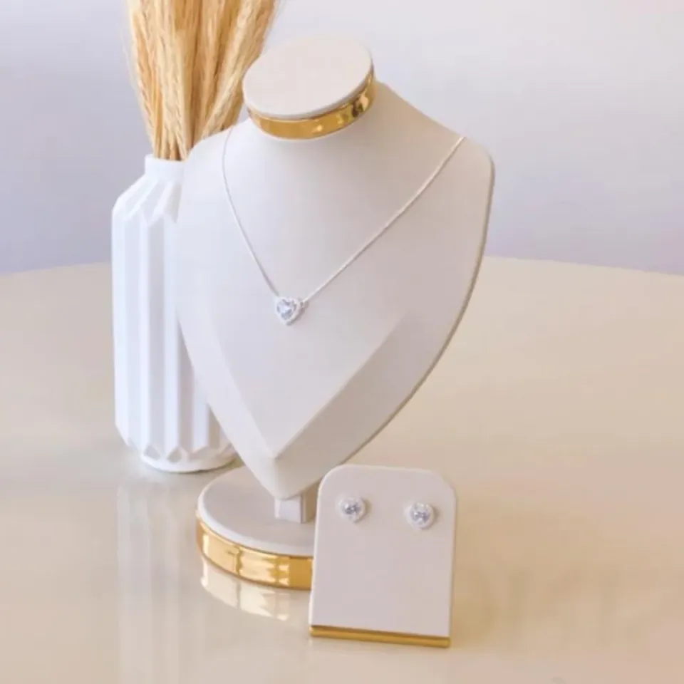 Conjunto Ródio Branco Quadrado Tiffany Cra...