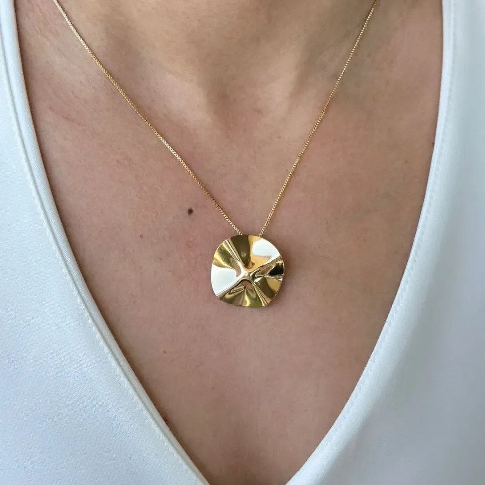Gargantilha Dourada Pingente Orgânico Aber...