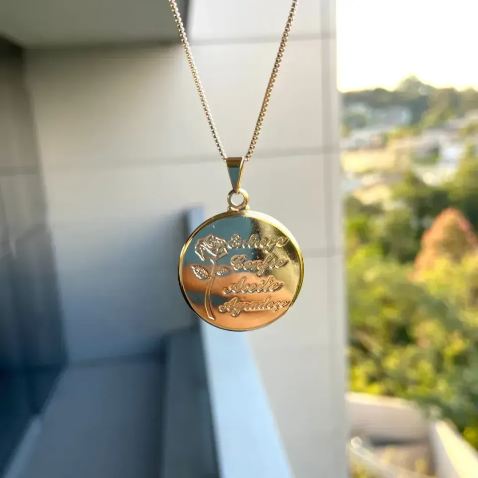 Gargantilha Dourada Pingente Orgânico Aber...