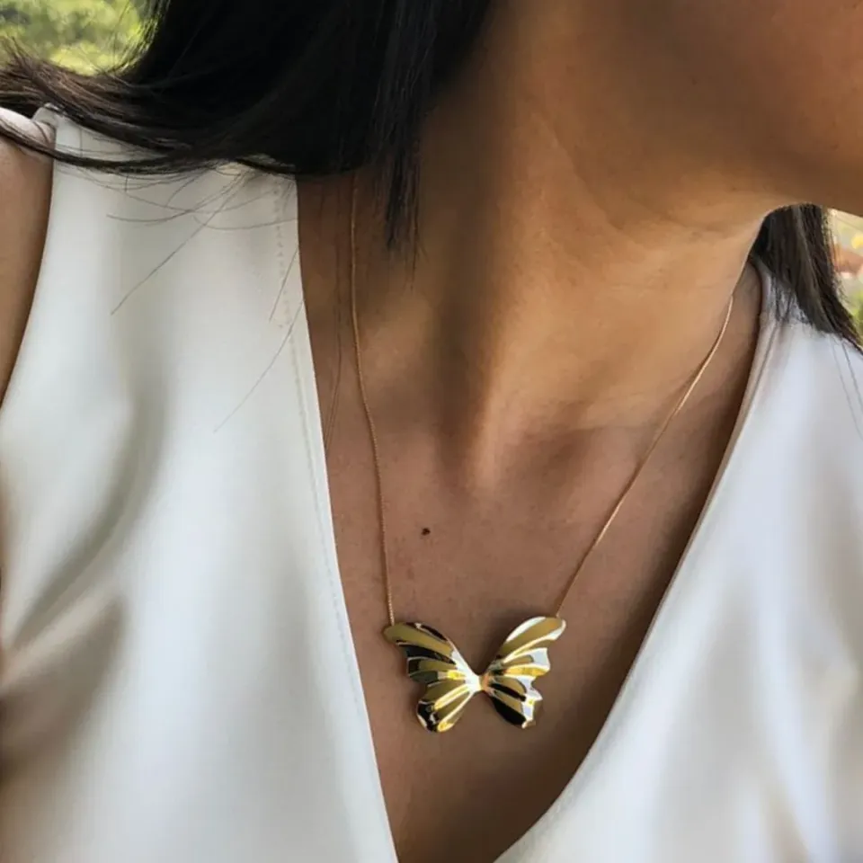 Gargantilha Dourada Pingente Orgânico Aber...