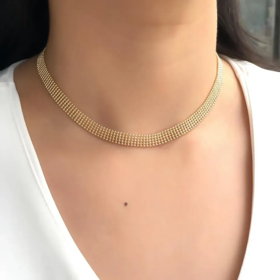 Gargantilha Dourada Pingente Orgânico Aber...