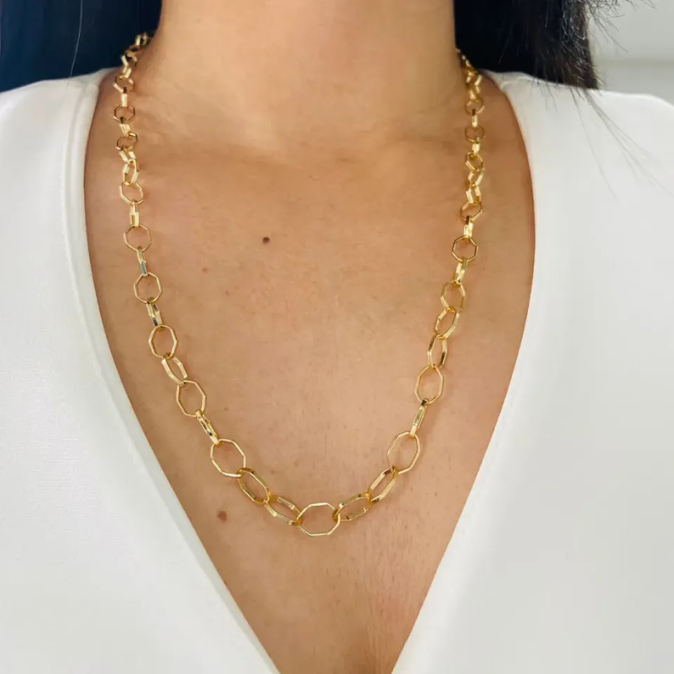 Gargantilha Dourada Pingente Orgânico Aber...