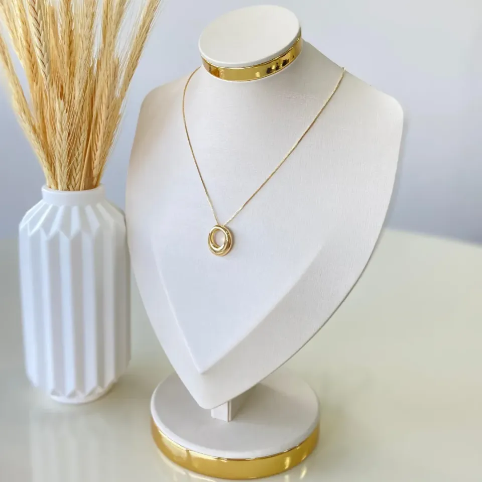 Gargantilha Dourada Pingente Orgânico Aber...