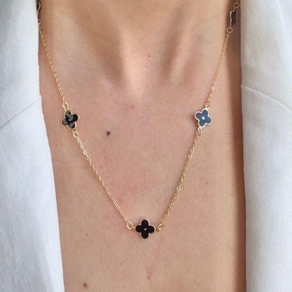 GARGANTILHA DOURADA TREVO VAN CLEFF BLACK ...