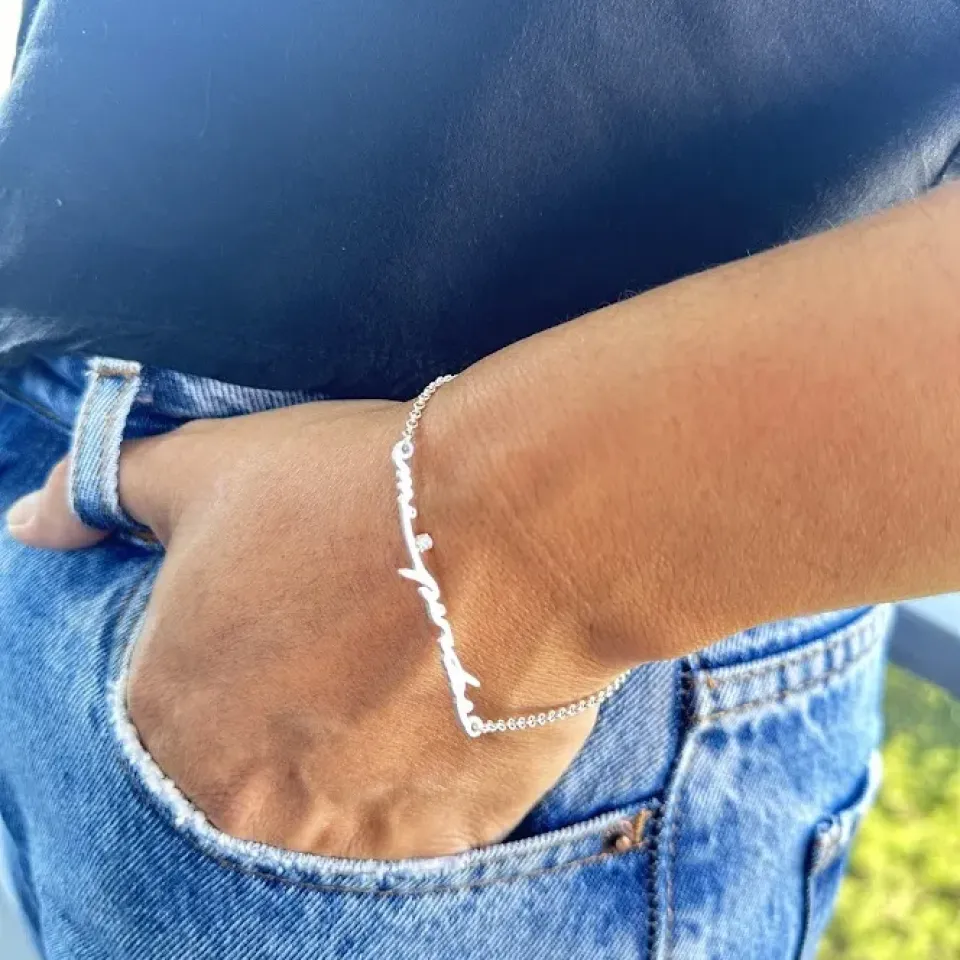 PULSEIRA PRATA "LOVE" CURSIVO LISO...