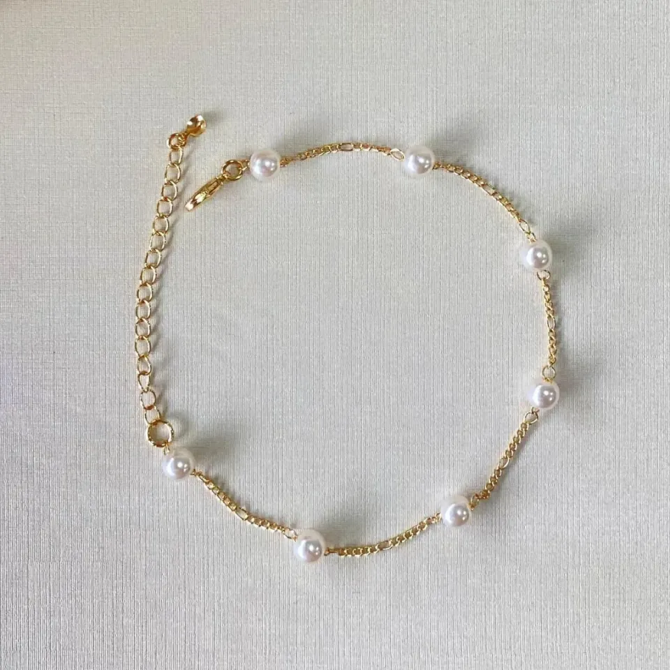 TORNOZELEIRA DOURADA COM MINI CORAÇÕES CHA...