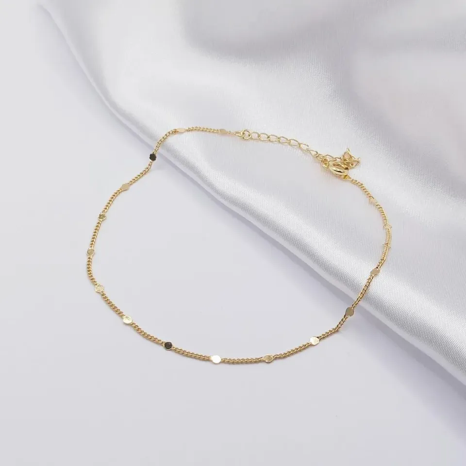 TORNOZELEIRA DOURADA COM MINI CORAÇÕES CHA...