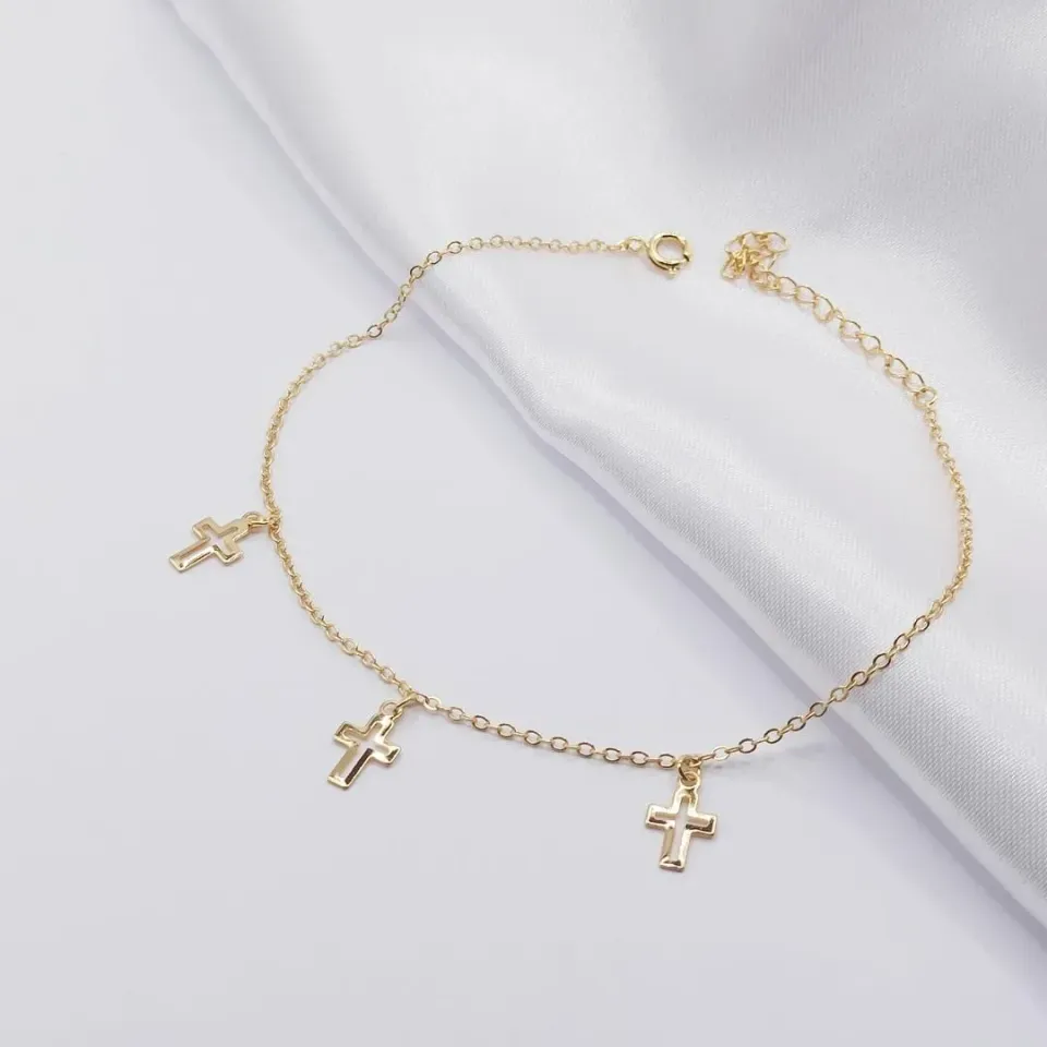 TORNOZELEIRA DOURADA COM MINI CORAÇÕES CHA...