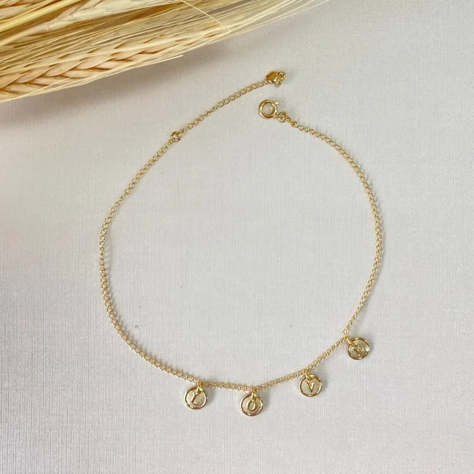 TORNOZELEIRA DOURADA COM MINI CORAÇÕES CHA...