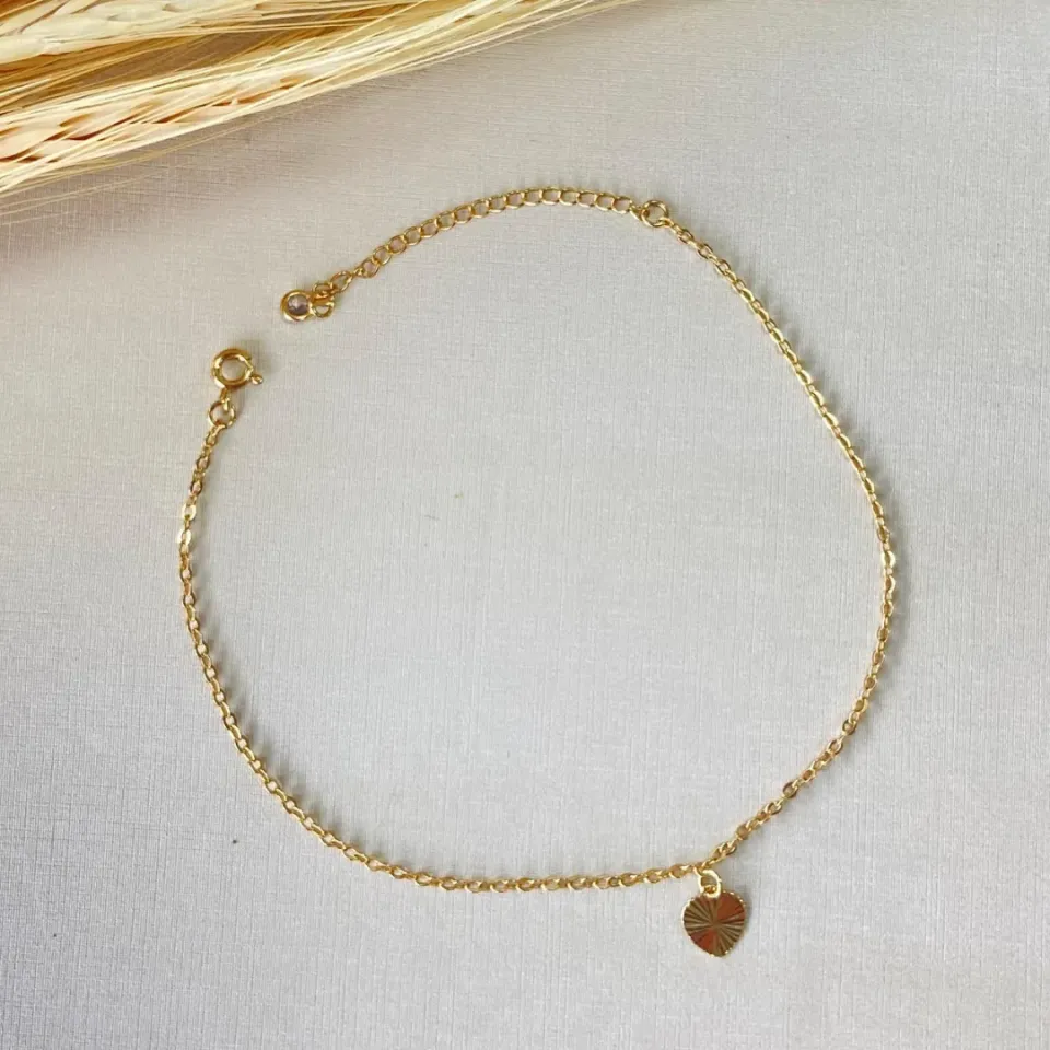 TORNOZELEIRA DOURADA COM MINI CORAÇÕES CHA...