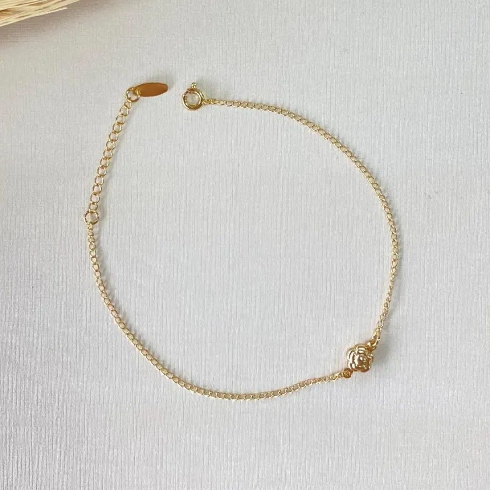 TORNOZELEIRA DOURADA COM MINI CORAÇÕES CHA...