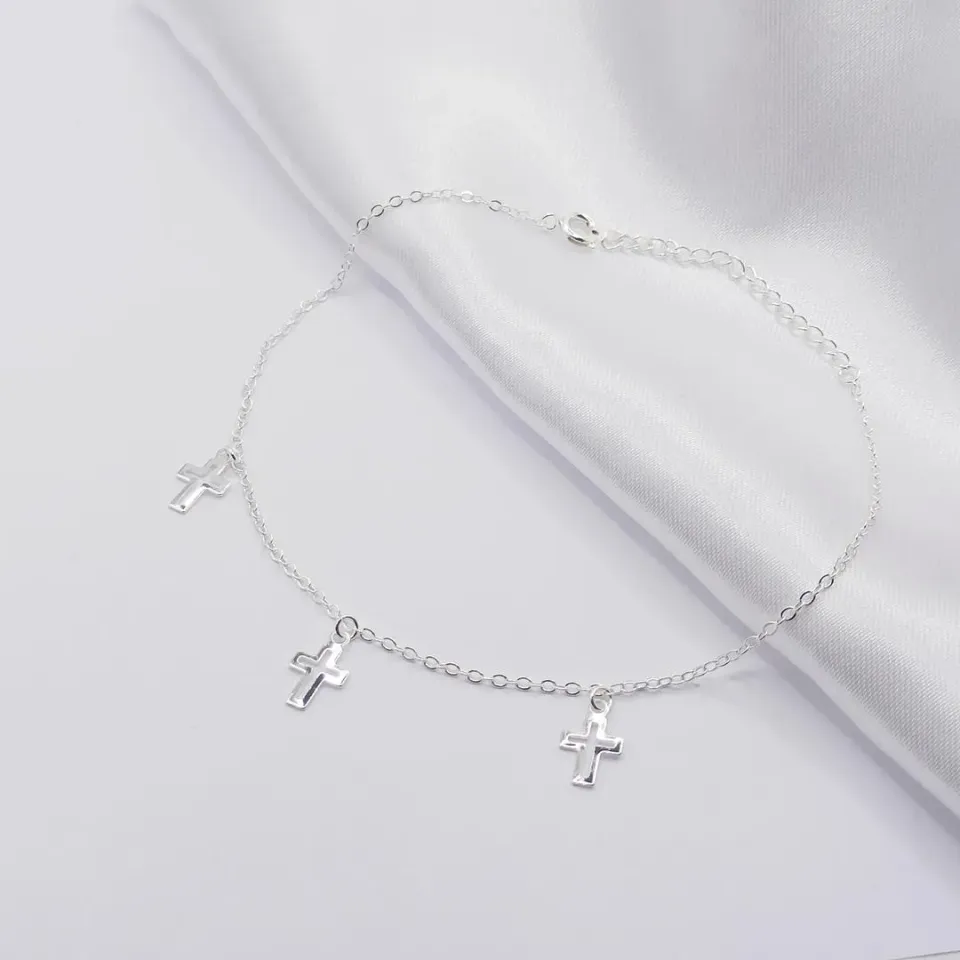 TORNOZELEIRA DOURADA COM MINI CORAÇÕES CHA...