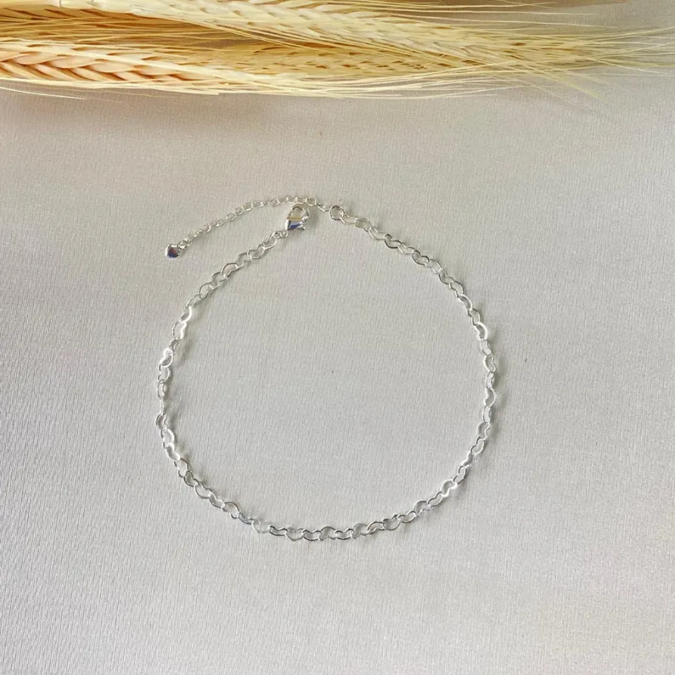 TORNOZELEIRA DOURADA COM MINI CORAÇÕES CHA...