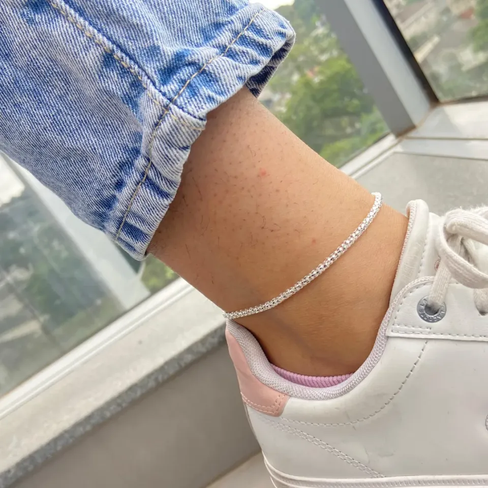 TORNOZELEIRA DOURADA COM MINI CORAÇÕES CHA...